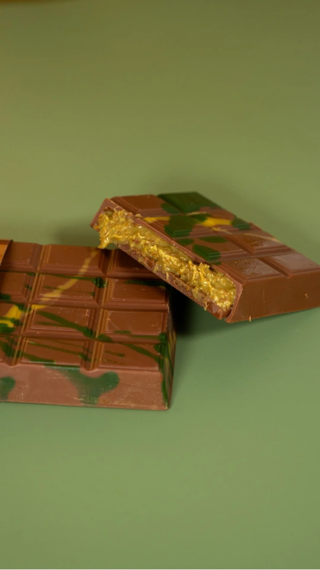 Jede Tafel von Kikis Dubai Style Chocolate ist mit ganzen Pistazien verziert ¨C optisch ansprechend und geschmacklich top, was mehr wollen?